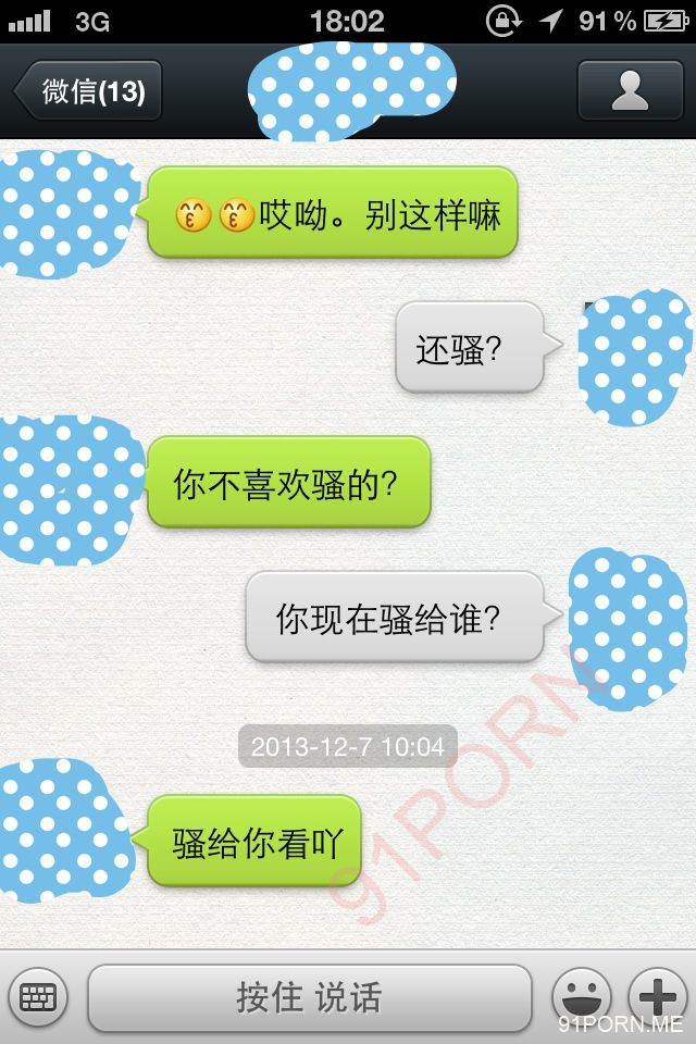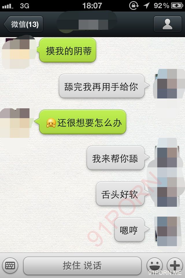 闲话少说,上次足球宝贝的续集内容在硬盘修好后我还在整理,没那么快。本季就先上一段最近无聊跟她微信调情的内容让大家娱乐娱乐罢。