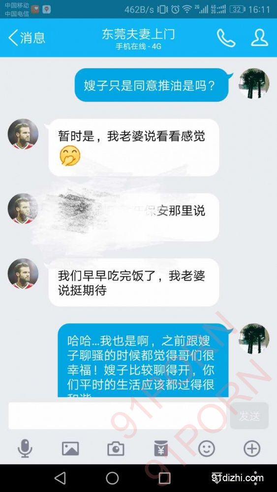 我和A哥夫妻是年前在91认识的(不得不说91真是个好论坛,能够约到很多志同道合的夫妻,情侣,大大地给你们打个广告!),大家都是东莞的,所以很多话题都聊得起来,不幸的是之前删了聊天记录(这部分真是太不幸了,包含了从跟A哥认识到认可,在和A嫂聊骚的全过程),只剩下推油单天的聊天记录。好吧...进入正题!请看片!