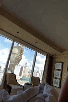 次日天气甚佳,窗帘拉开,澳门地标新葡京酒店立马映入眼前