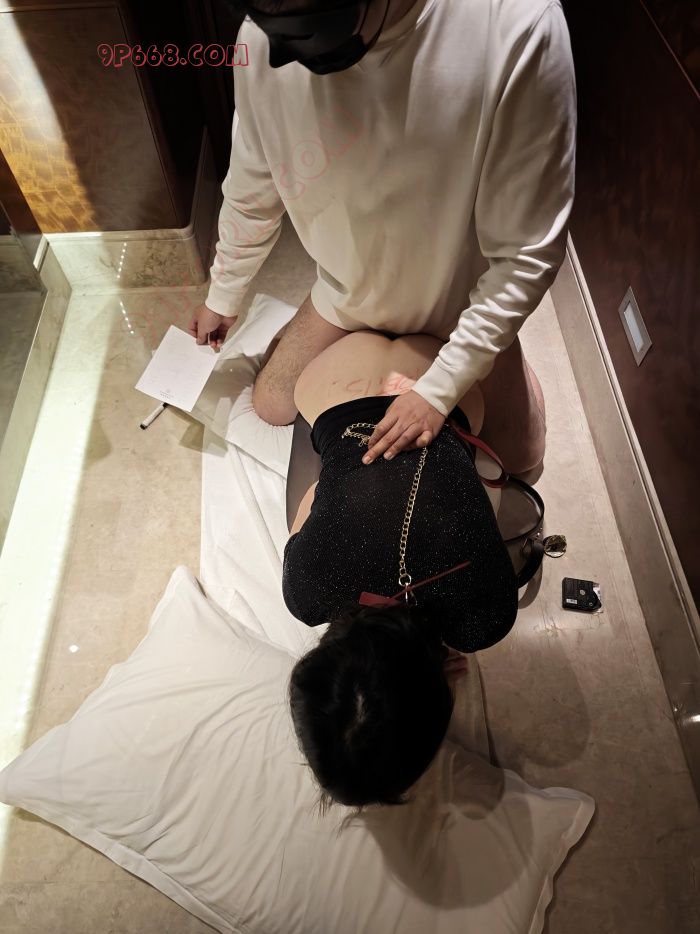 插了一会儿,上床继续,标准的小狗爬,前面被老公用链子拉着,后面被我赶着爬到床边。