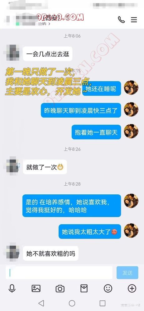 这次活动的西安夫妻,他妻子严格意义上说应该属于第一次活动,她的性格比较高冷,对单男细节要求比较高,他们十年前就接触夫妻交友了,这些陆陆续续见的单男有七八个,线上联系的也有五六个了,但是始终没有满意的,最接近的一次也是去了酒店,最后不欢而散,应该说她内心是抵触的,很多丈夫都以为妻子做好准备了,其实还没到那一步,应该很多夫妻都有过这种经历,他老婆应该是属于那种真的很难开发的那种,但是最终在我们双方共同努力下,还是成功了,而且用丈夫的话说,比她想象中要顺利太多太多了,他说这次是最后一次了,如果连我也不行,他就放弃了,以后也死心了。丈夫加我信息后,一直和我强调他很爱他妻子,这些年她妻子为了这个家和孩子前后操劳,一直很辛苦,特别想她能够开心快乐,自己也有轻微的淫妻绿帽情结,所以很想玩能够帮助到他,于是我让他把这些年的开发经历都告诉我,我给他制订了一系列开发的方案、方法和技巧,还有话术,包括我的人设,我们认识的过程,怎么加她,加了以后的开发流程等等,我都对他进行了详细和充分的准备,过程中他十分的信任我,都按照我各种要求去做,于是铺垫好了以后,我就加了她微信,就开始有计划的聊天,她一开始也是把我当成之前很多和她聊的单男一样吧,她属于那种比较冷淡的人,说话很容易让人感觉不理你,所以之前那些单男基本聊不了几天就放弃了,而我一开始就做好了长期准备,所以每次不管聊天还是不聊天,我都保持情绪的一个稳定状态,给她留下良好的印象,终于在这个过程中开始逐步建立了信任,我会给她买一些礼物,例如香水、首饰、睡衣之类的,虽然她都不缺这些,但是女人总是喜欢被在乎被在意的感觉,所以一定要了解女人。慢慢的,终于到了今年11月初,我和丈夫就商定,月底之前去西安旅游,然后和他们活动,他妻子应该心里是很矛盾和不安的,既很感谢我特地去西安找她,又担心去了见面不是她喜欢的类型,而造成尴尬的局面。在出行前一周,我和他妻子聊天比较频繁,给她做各种心里建设,让她放心下来,她其实心里也很期待。